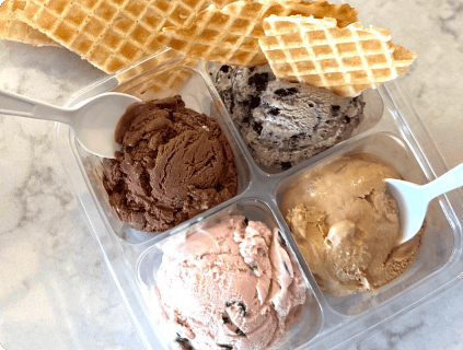 At Blue Scoop, we use all-natural ingredients to create a variety of dairy and non-dairy flavors. We offer a selection of classic and seasonal flavors featuring made from scratch mix-ins including cookies, candy, and sauces using local ingredients, whenever possible.